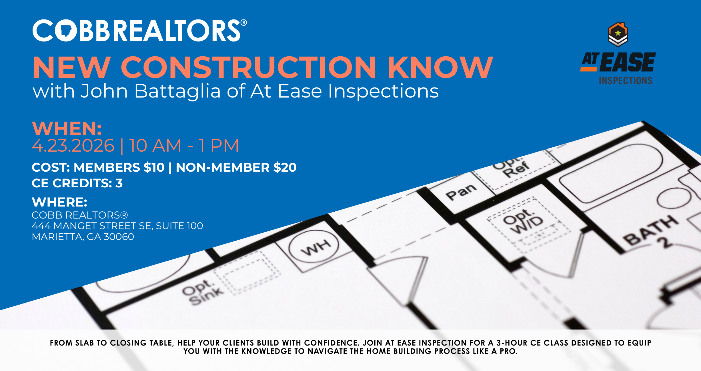 New construction doesn’t mean stress-free. Learn how to support your clients at every stage of the home building journey in this 3-hour CE course with At Ease Inspection. Gain practical insight into timelines, inspections, common pitfalls, and how to be your buyer’s strongest advocate.