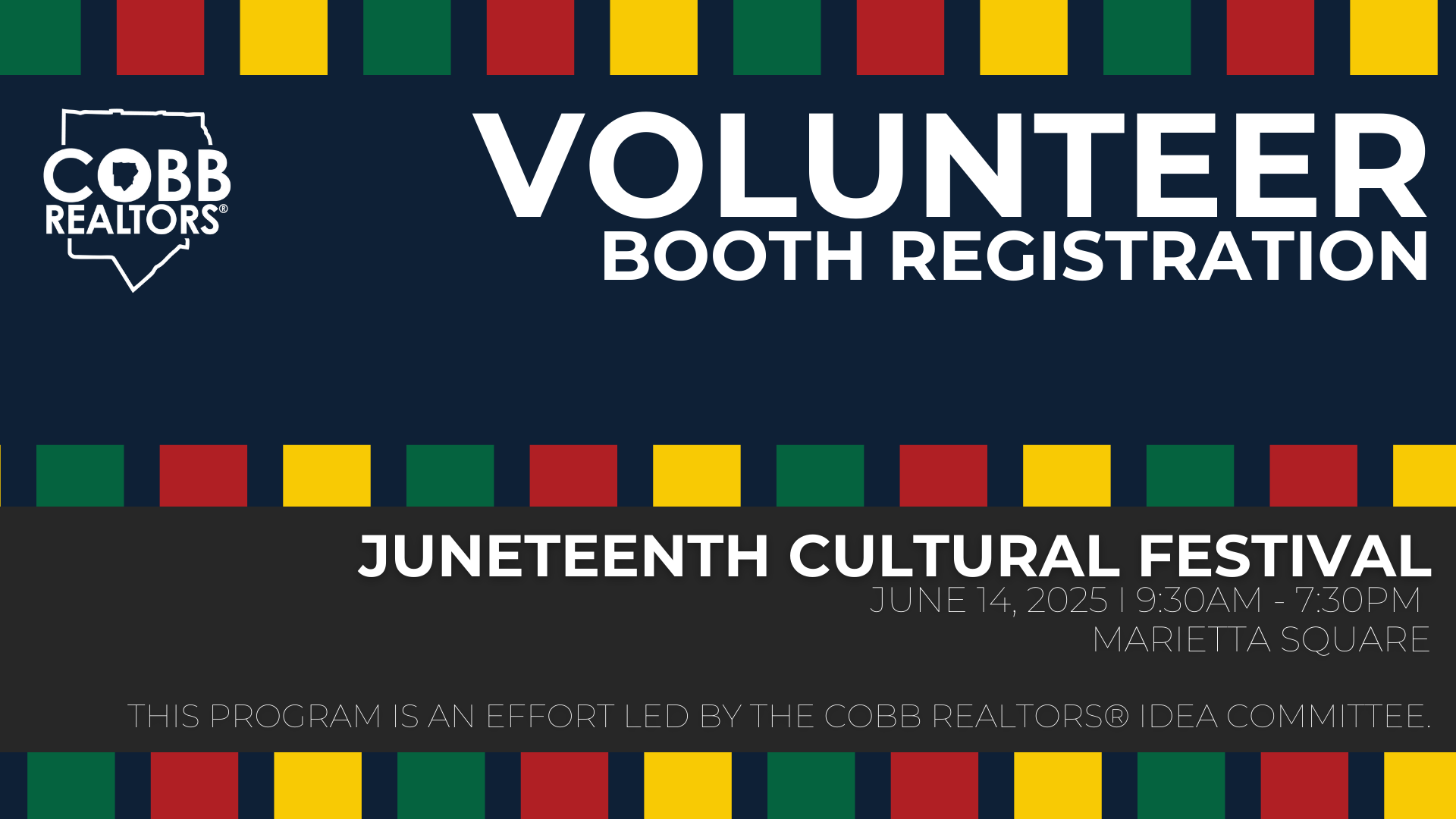 Cobb REALTORS® Members have the opportunity to register for a 2-hour shift to volunteer in the booth at the festival while giving out swag and interacting with the community. Raffles and other prizes will bring be offered while collecting information from the community.