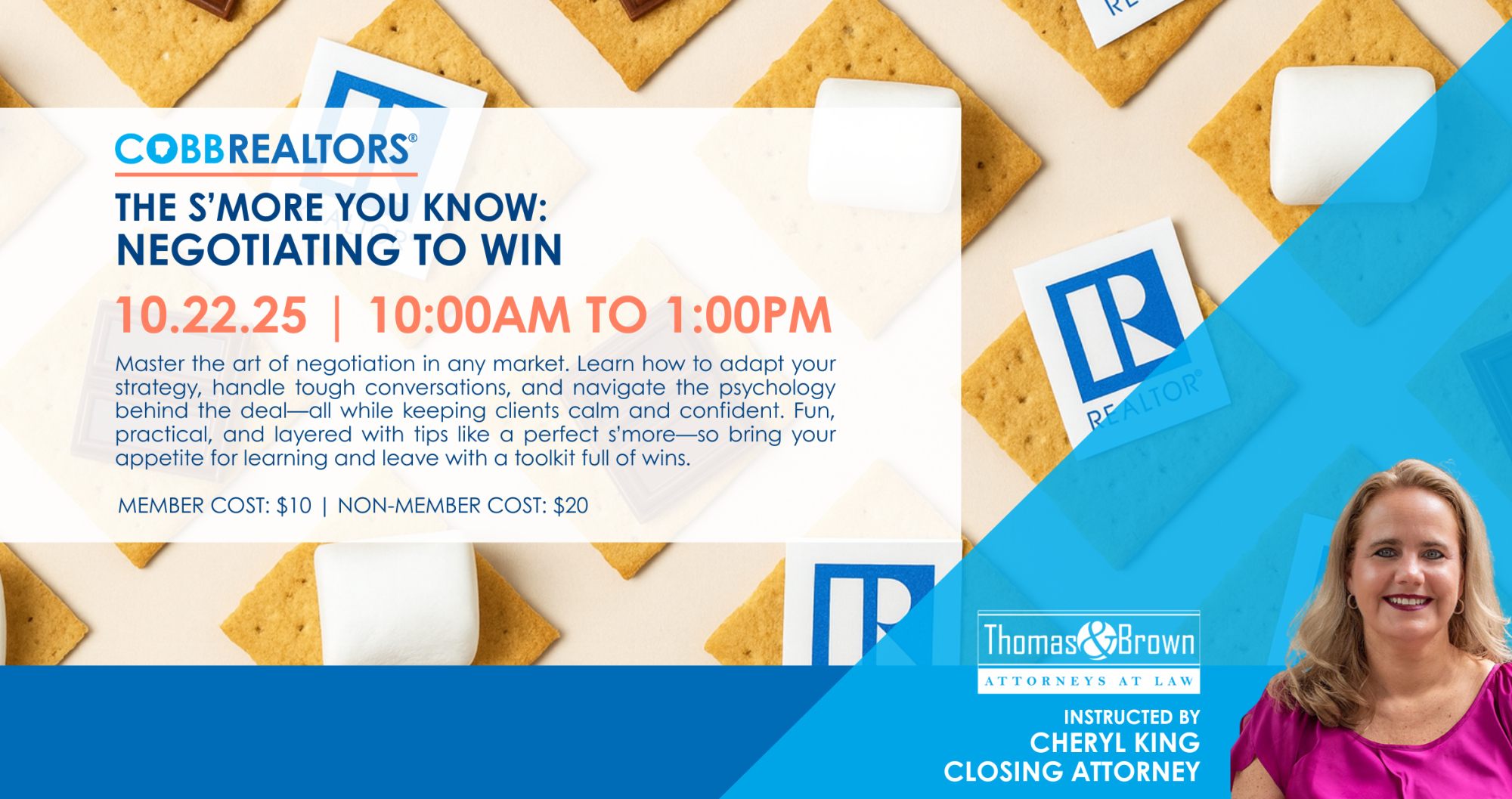 Sweeten the Deal with Smart Negotiation Tactics In real estate, negotiation is everything—and the more you know, the better your outcomes. Whether you're working in a buyer’s market, a seller’s market, or somewhere in between, this engaging class will give you the tools to tailor your strategy, read the room, and keep your clients (and their in-laws) calm and confident. We’ll explore real-world techniques for handling tough conversations, adapting to shifting market conditions, and mastering the psychology behind the deal. It’s fun, it’s informative—and just like a good s’more, it’s layered with goodness.