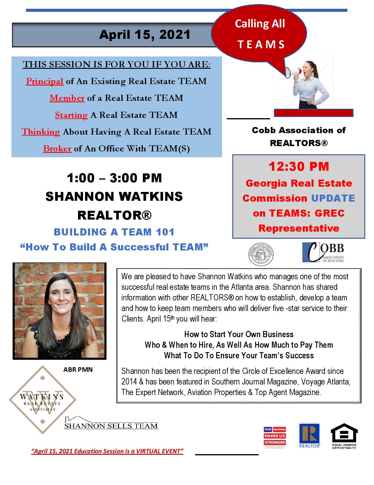 Speakers: Lynn Dempsey (Georgia Real Estate Commissioner), Paul Brower (Chairperson), & Shannon Watkins!