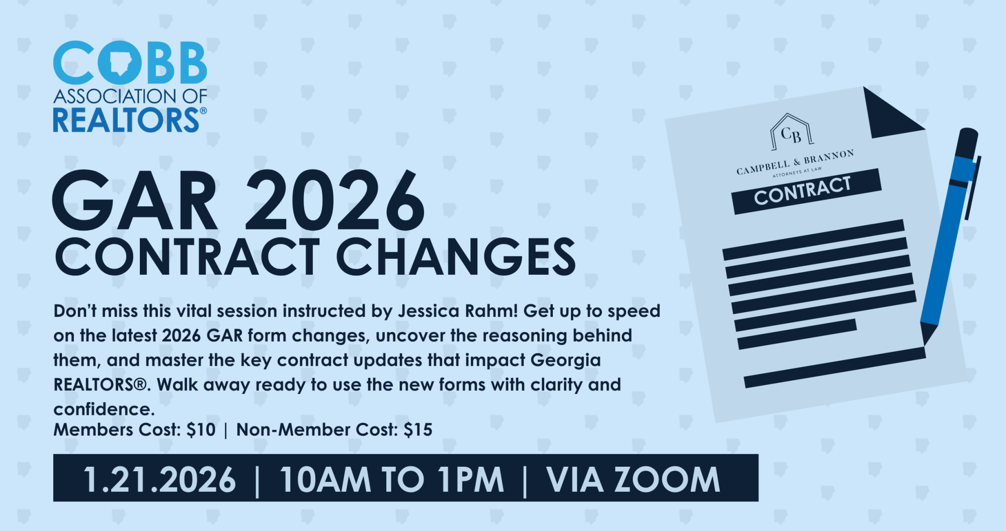 Get up to speed on the latest 2026 GAR form changes, uncover the reasoning behind them, and master the key contract updates that impact Georgia REALTORS®. Walk away ready to use the new forms with clarity and confidence.