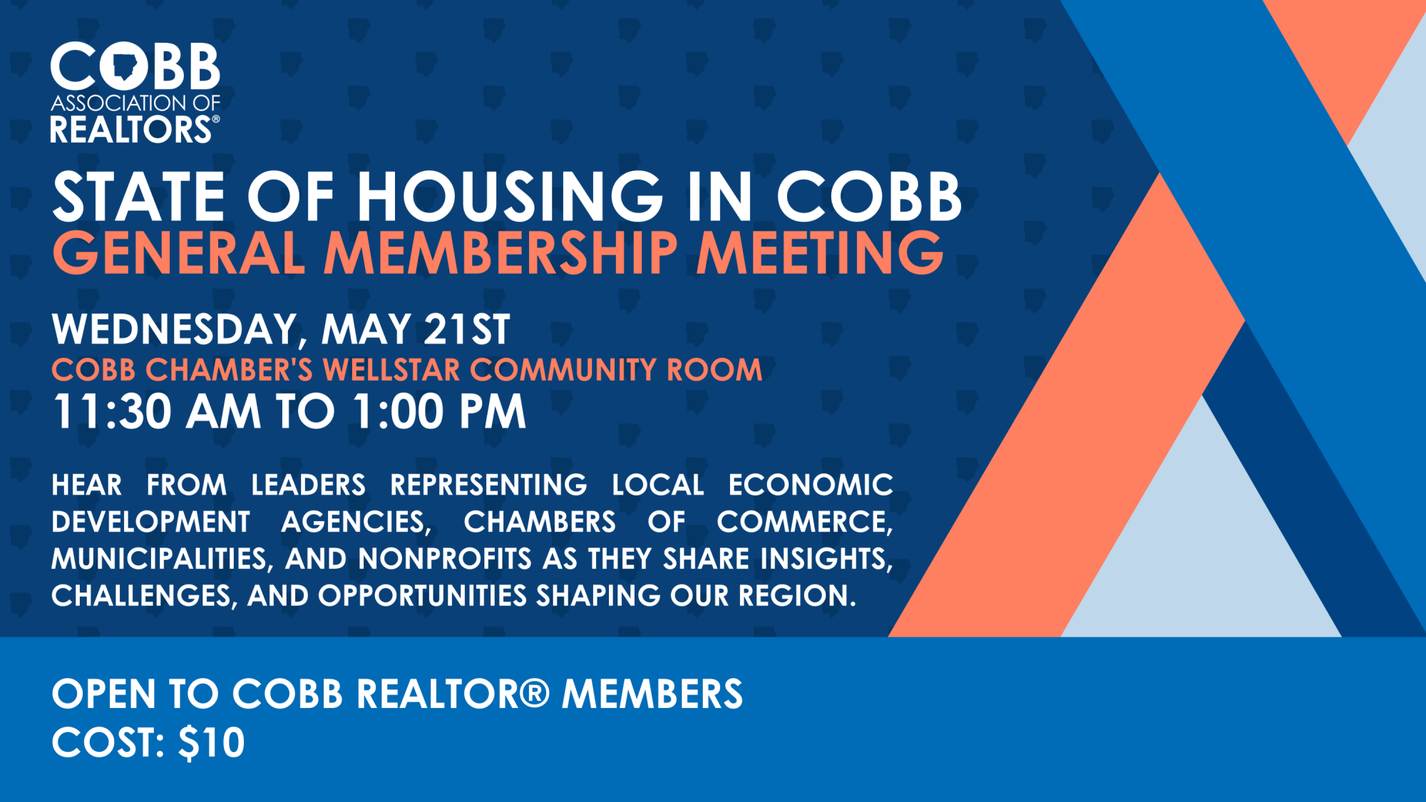 Join us for a dynamic panel discussion at the May Cobb REALTORS® Membership Meeting as we explore the current and future landscape of housing in Cobb County.